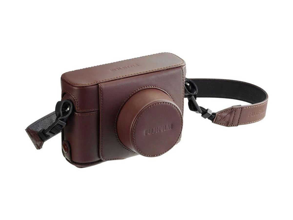 Nahkainen kotelo ja hihna suojaavat Fujfilm X100F kameraa kolhuilta ja iskuilta.