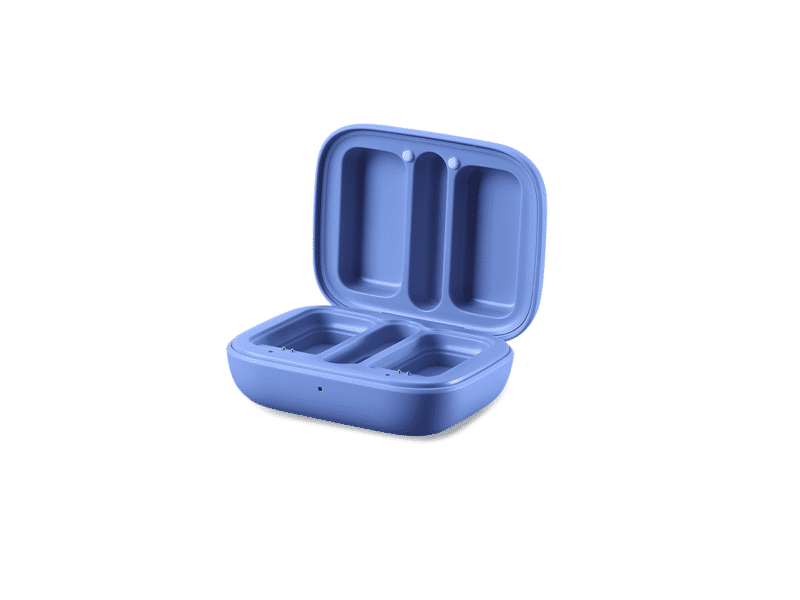 TX: In-built rechargeable lithium-ion battery, charged via Pogo-pin contacts to Charging Case (5V, 0.1A)